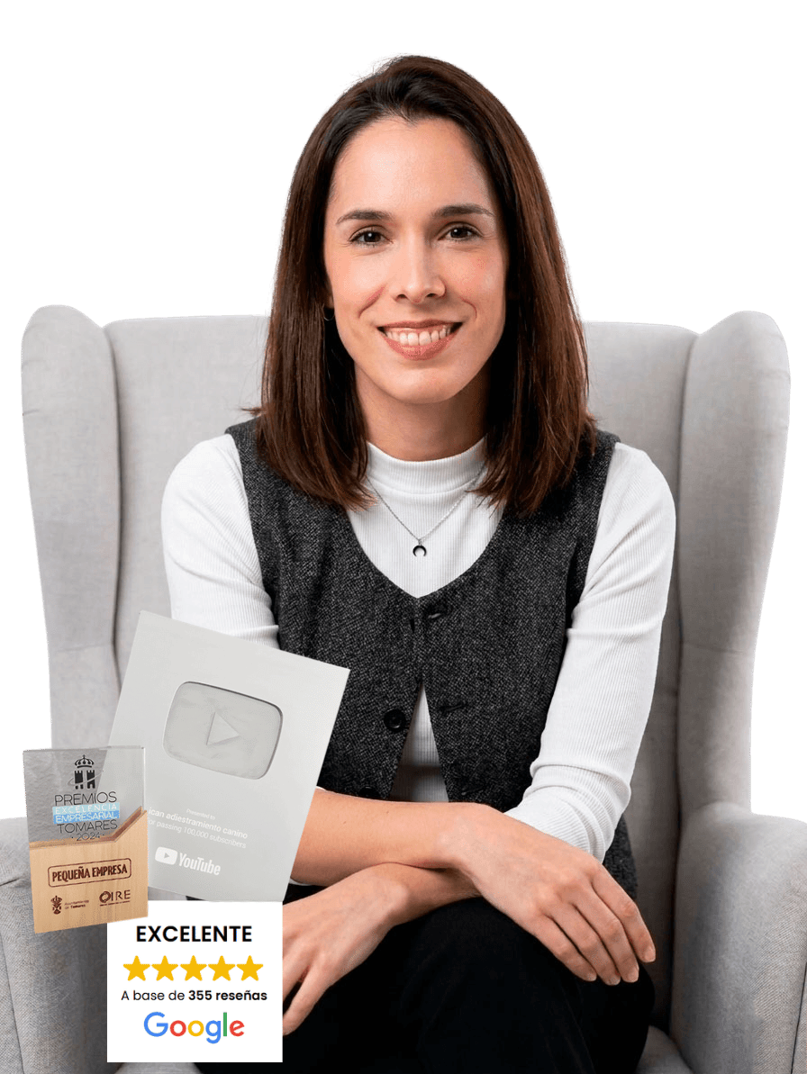 - Titulada en Adiestramiento de Base y Educación Canina, y certificada oficialmente por el Instituto Nacional de Cualificaciones (INCUAL) del Ministerio de Educación y Formación Profesional.